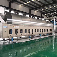 隧道式洗衣機配套設備之一,布草經隧道式洗衣機預洗、主洗、漂洗出倉后自動進入壓榨機進行壓榨脫水。與傳統的壓榨設備相比,百強壓榨機采用 了先進的經過特殊設計的棱式壓榨頭 ,可以在壓榨過程中有效逐步去除布草中殘存 的空氣,防止在壓榨過程中因壓力過大出現布草爆損,大限度地保護布草的完好。 壓榨好的布草經穿梭運輸機進入烘干機進行打散烘干。